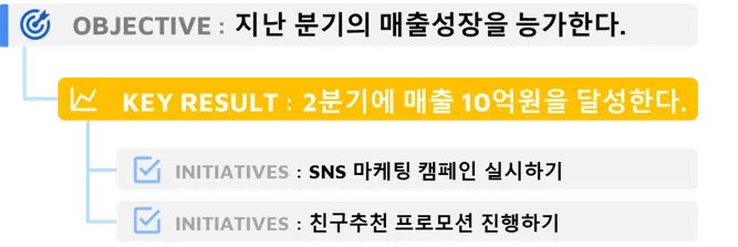 [예시] OBJECTIVE - KEY RESULT - INITIATIVES/TASKS