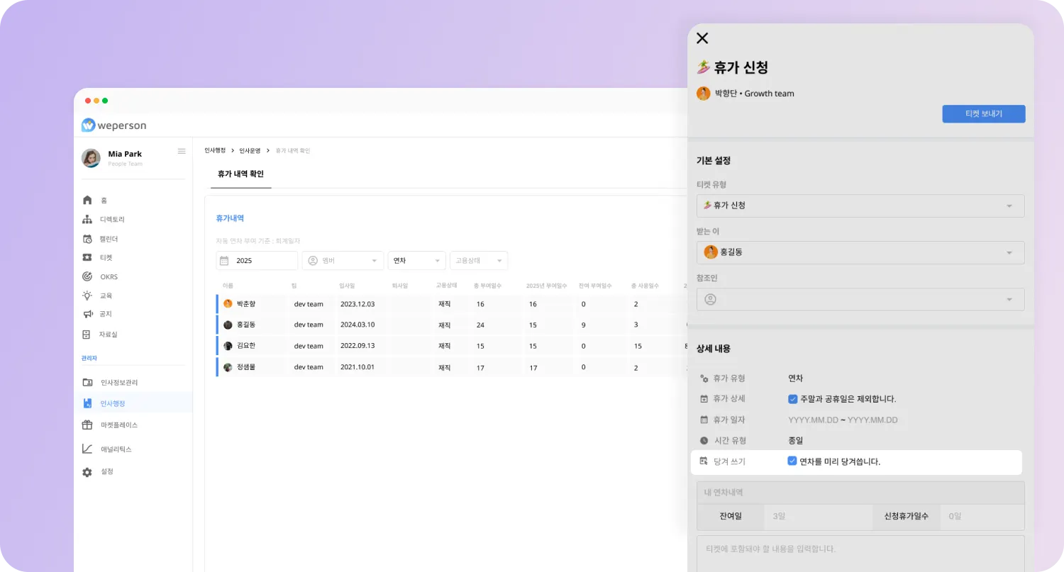 그리고 멤버가 휴가를 당겨쓸 수 있도록 설정할 수 있는 기능도 함께 업데이트 되었어요.