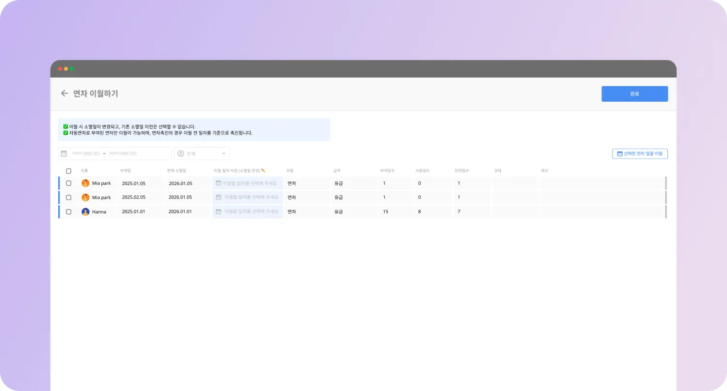 자동부여된 연차는 소멸일을 변경할 수 없어서 불편하셨나요?