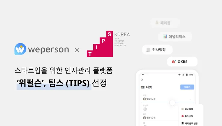 스타트업을 위한 차세대 인사관리 플랫폼 ‘위펄슨(weperson)’을 개발·운영하는 펄슨이 중소벤처기업부의 기술창업지원 프로그램인 팁스(Tech Incubator Program for Startup·TIPS)와 연계사업에 동시 선정됐다.