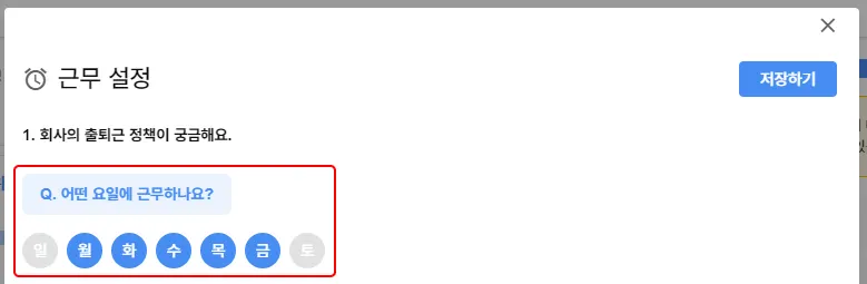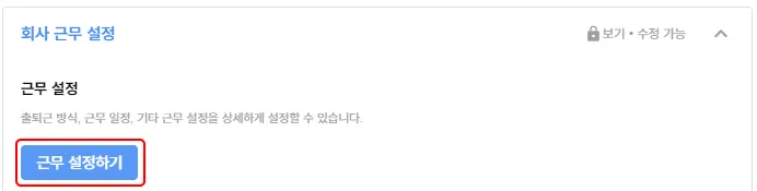 근무 설정하기 를 눌러 근무 설정 팝업을 확인할 수 있습니다.