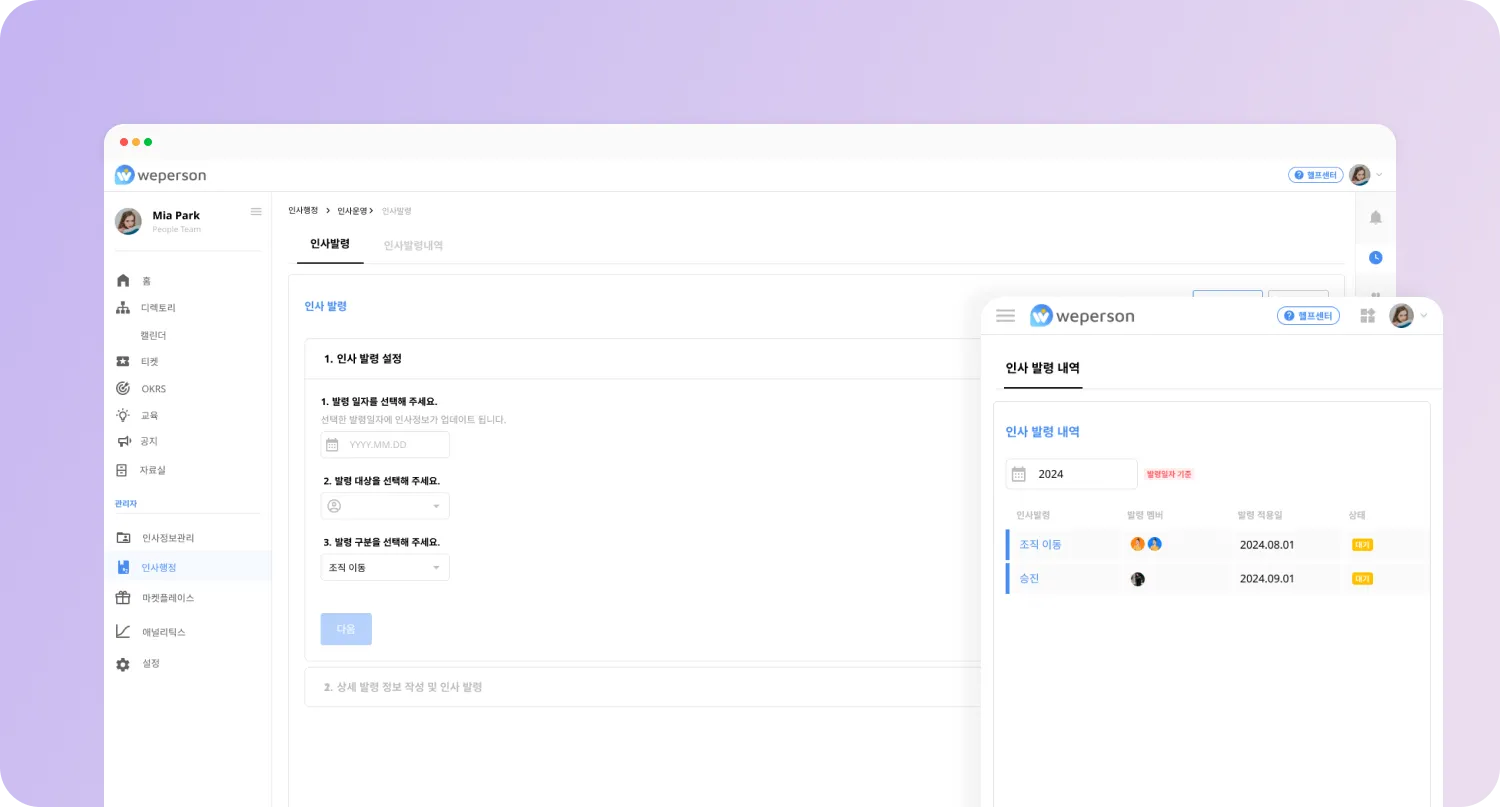 이제 인사 발령 시기에 맞춰 일자를 예약하고, 발령할 멤버의 정보를 한 곳에서 작성할 수 있어요.