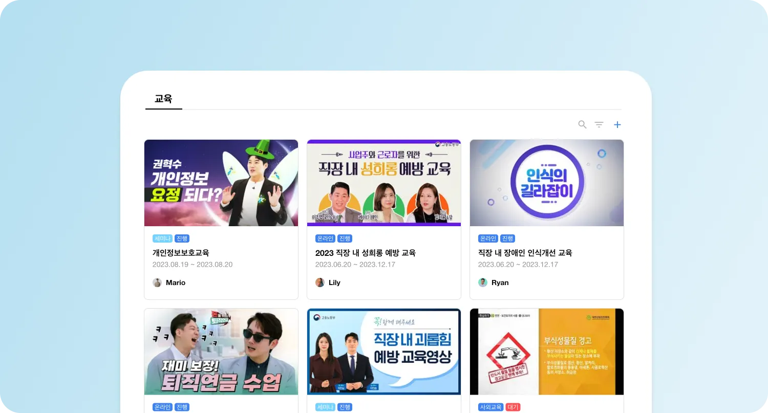 교육을 더 쉽게 파악하고 진행할 수 있도록 교육페이지가 개선되었어요!