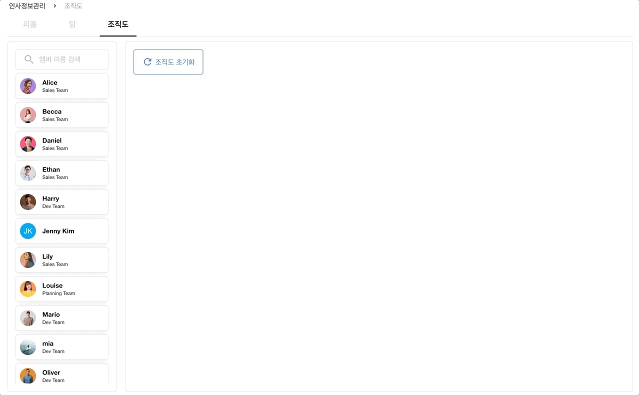 조직도는 인사정보관리 / 디렉토리 메뉴에서 확인할 수 있어요.