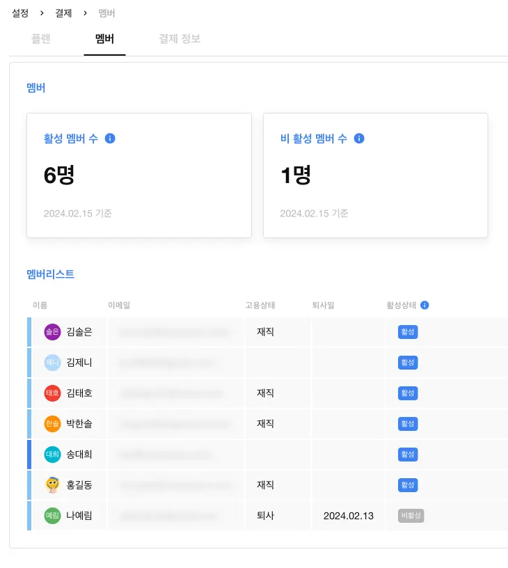 퇴사 일자가 있는 멤버의 경우 퇴사 일자가 지난 후 비활성 멤버로 분류됩니다.