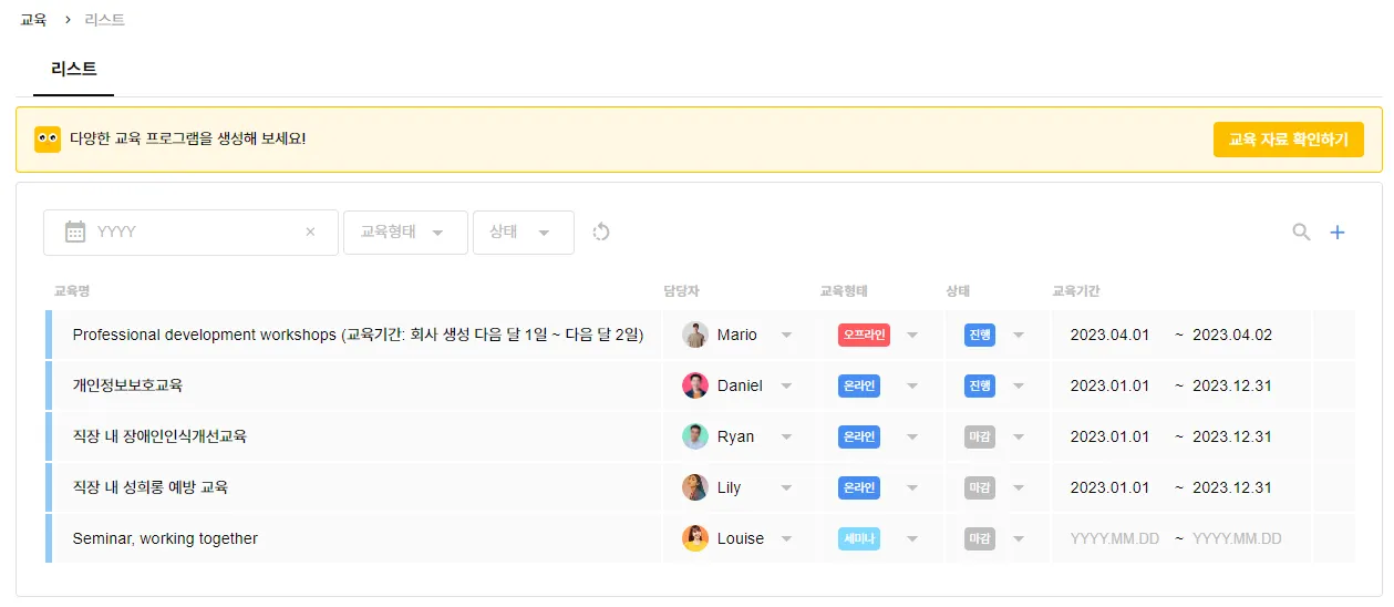 사내외 다양한 교육 일정을 등록할 수 있습니다.