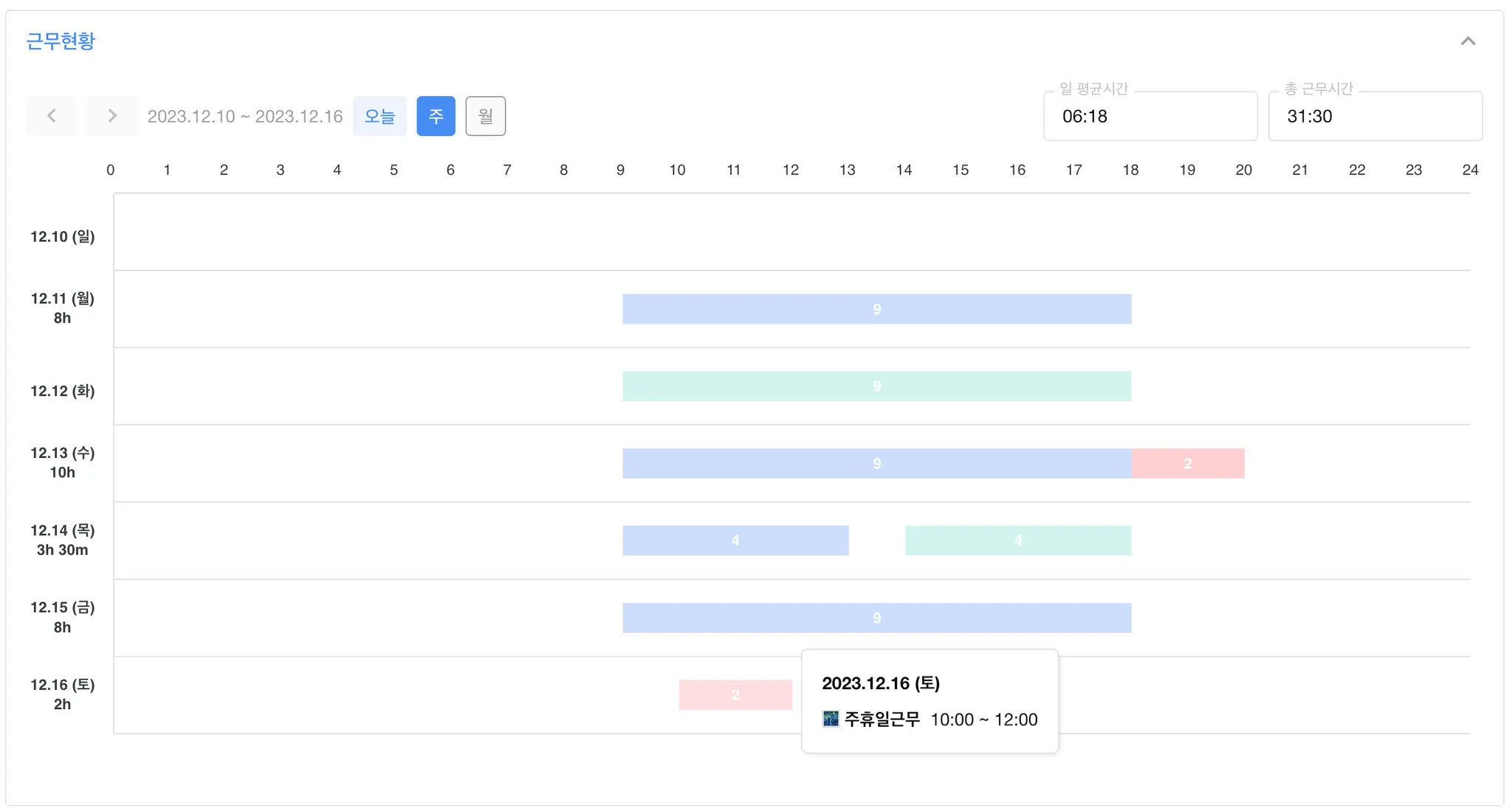 내 연장 근무 신청 내역은 디렉토리 > 본인 선택 > 출퇴근탭 혹은 우측 본인 아바타 클릭 후 출퇴근 페이지에서 확인할 수 있습니다.