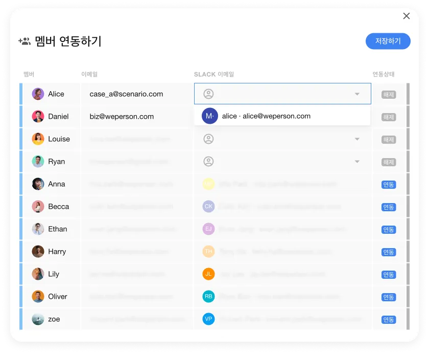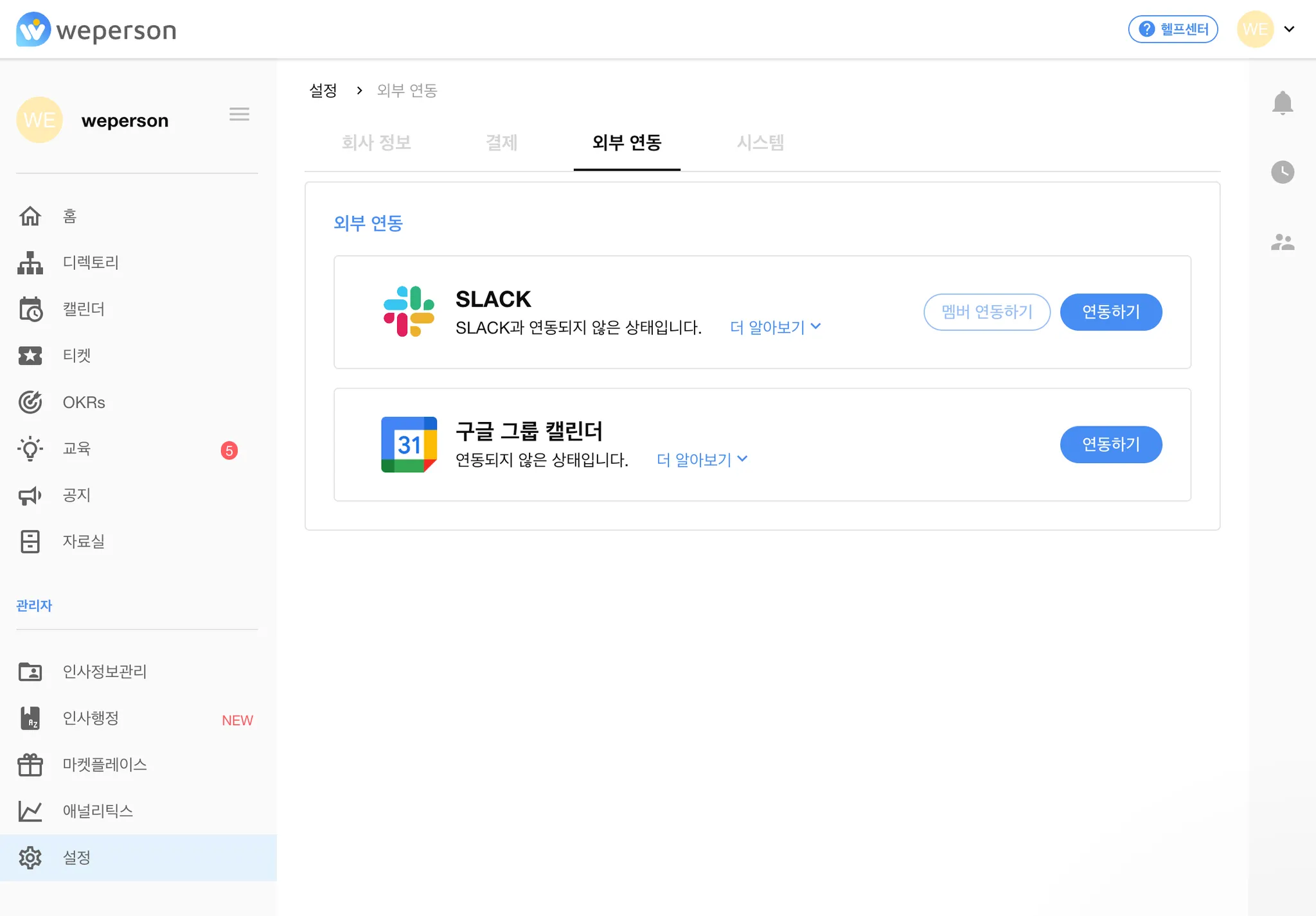 멤버 연동하기에서 위펄슨 멤버의 계정과 슬랙 계정을 연동하면 끝!