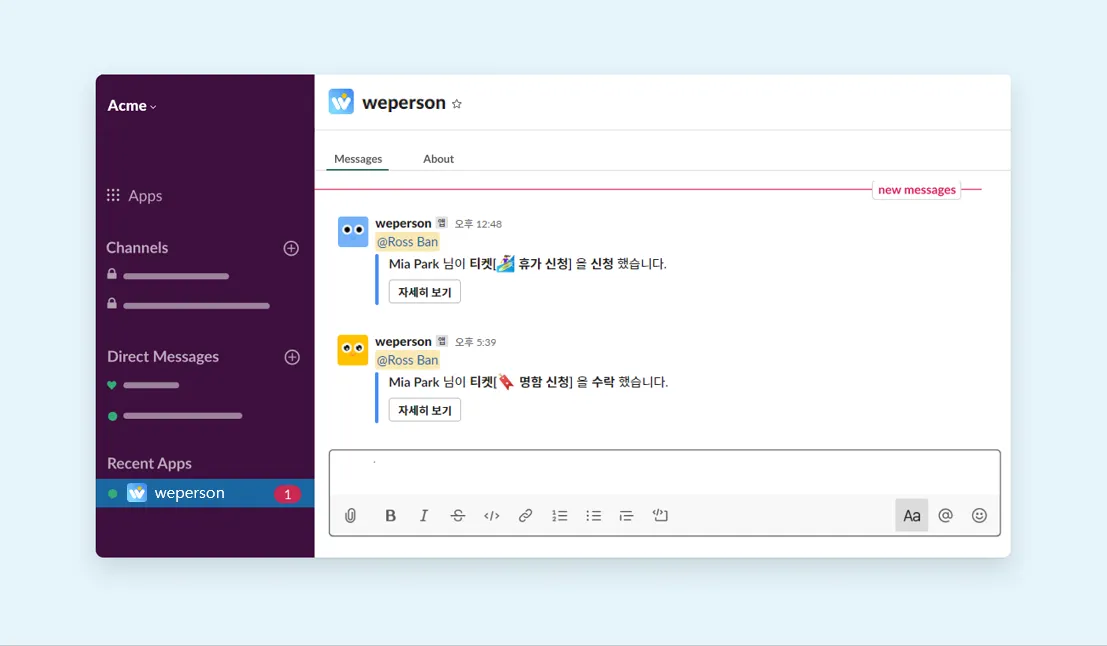 슬랙과 위펄슨을 연동하고 편리하게 사용해 보세요!
