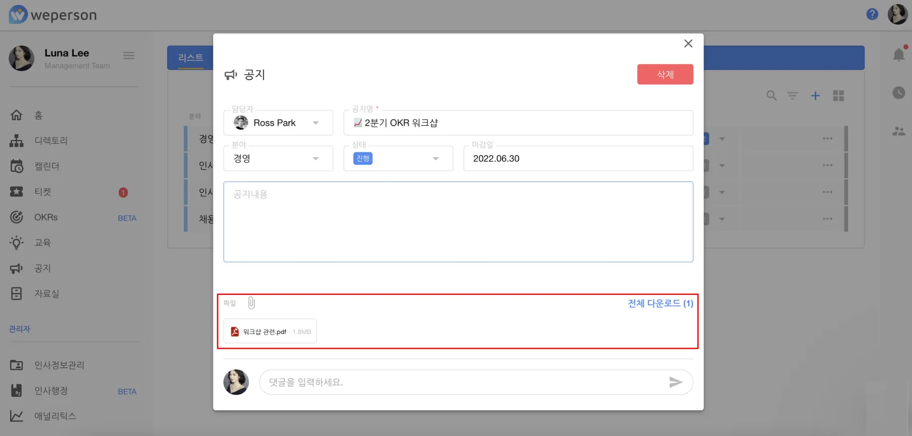 위펄슨 공지를 이용하여 직원들에게 회사 관련 소식을 전해보세요!