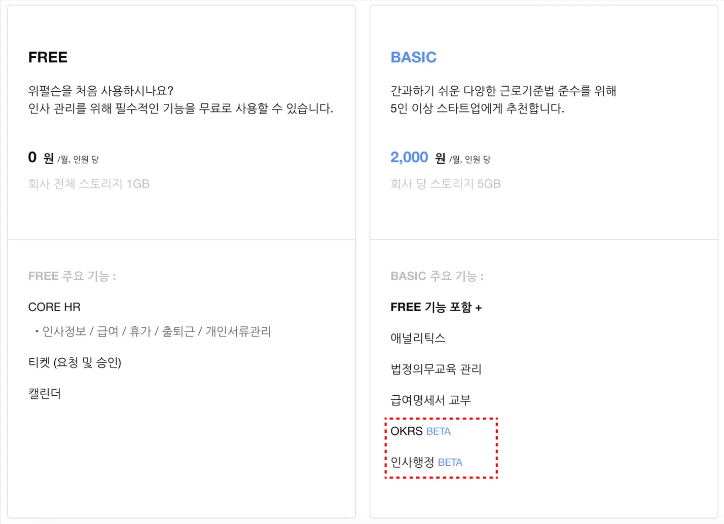 월 2,000원 BASIC 플랜으로 위펄슨 모든 기능을 사용할 수 있다니요 !!