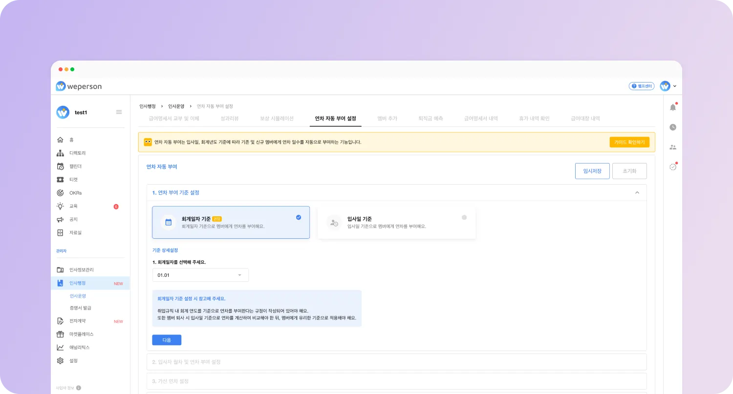 조금 더 쉽고 간편하게 연차를 부여할 수 있도록 자동 부여 기능이 확 개선되었어요!