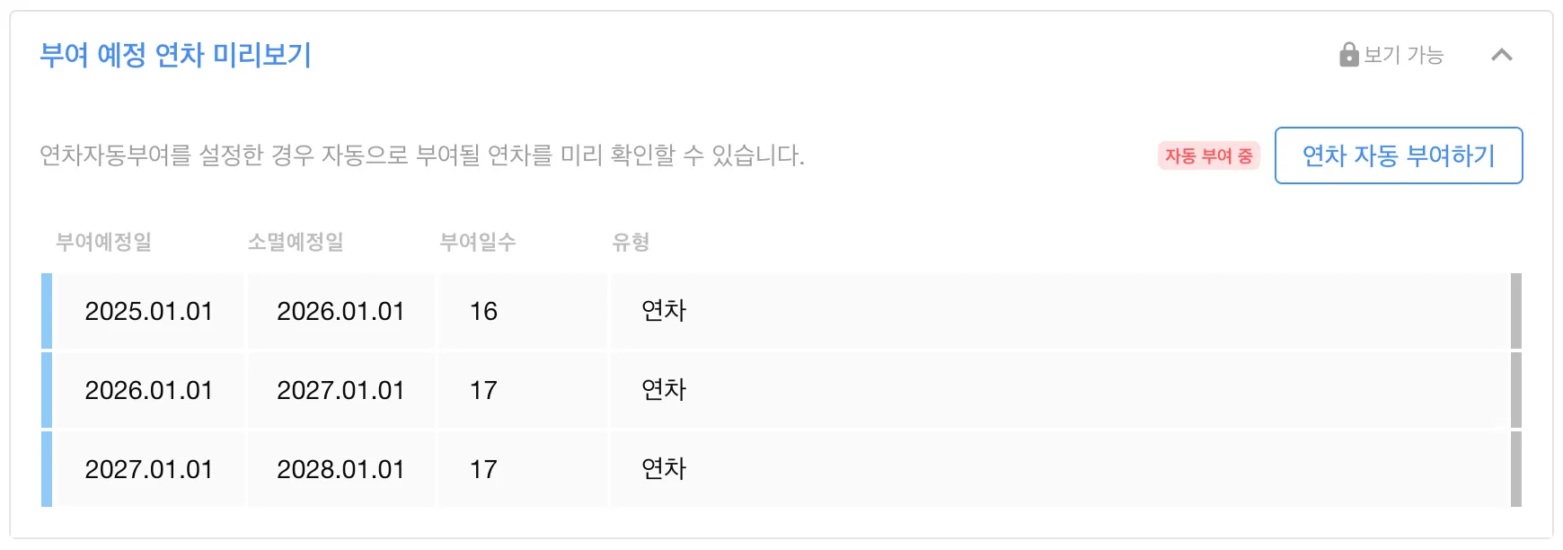 연차 자동 부여를 설정한 후에도 생성될 연차 내역을 미리 확인하고 싶으셨나요?