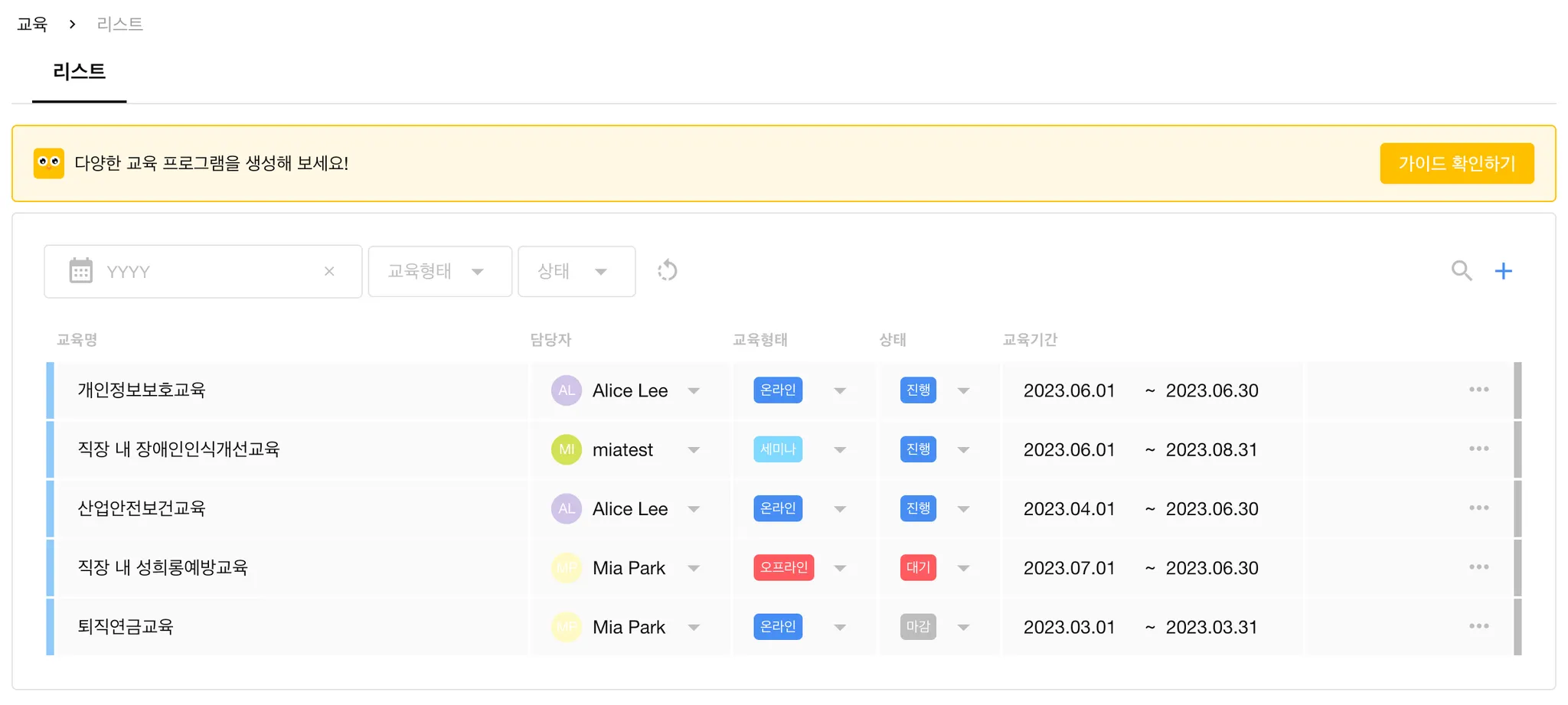 사내외 다양한 교육 일정을 등록할 수 있습니다.