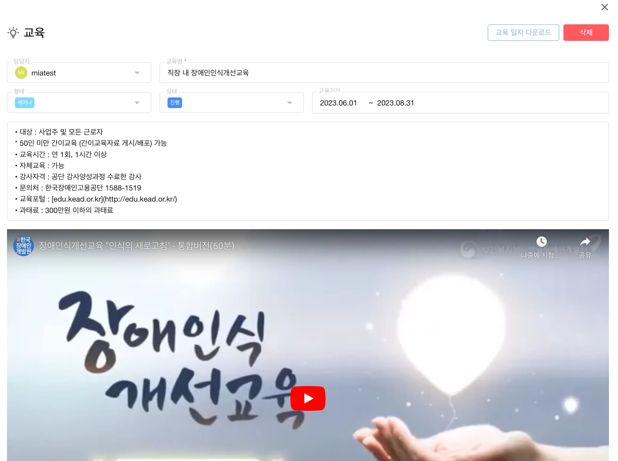 회사에서 필수적으로 관리해야 하는 법정의무 교육 진행 및 이수 여부를 관리할 수 있습니다.