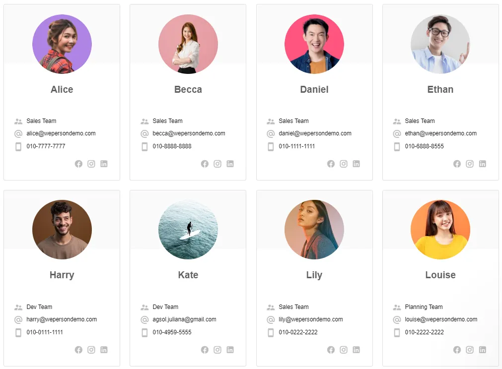 회사 내 전체 멤버와 멤버들의 프로필을 확인할 수 있습니다.